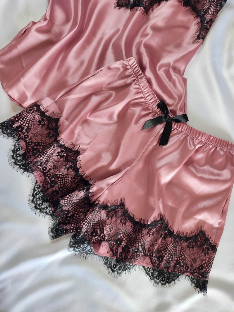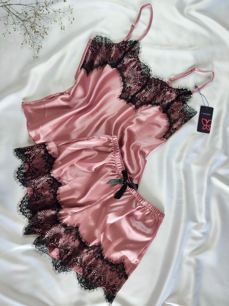 BabyDoll em cetim, Alças com regulagem, forrado no seio, short curto com renda.