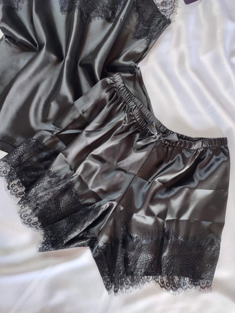 BabyDoll em cetim, Alças com regulagem, forrado no seio, short curto com renda.