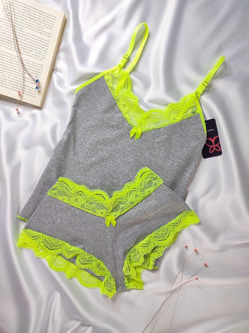 BabyDoll em cotton, alças com regulagem, short bem curtinho com renda.