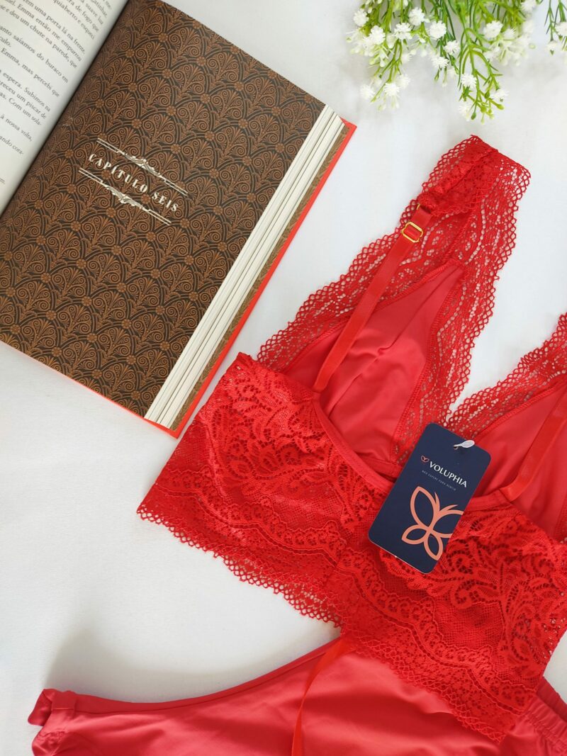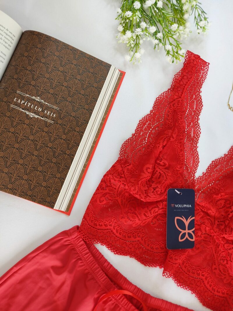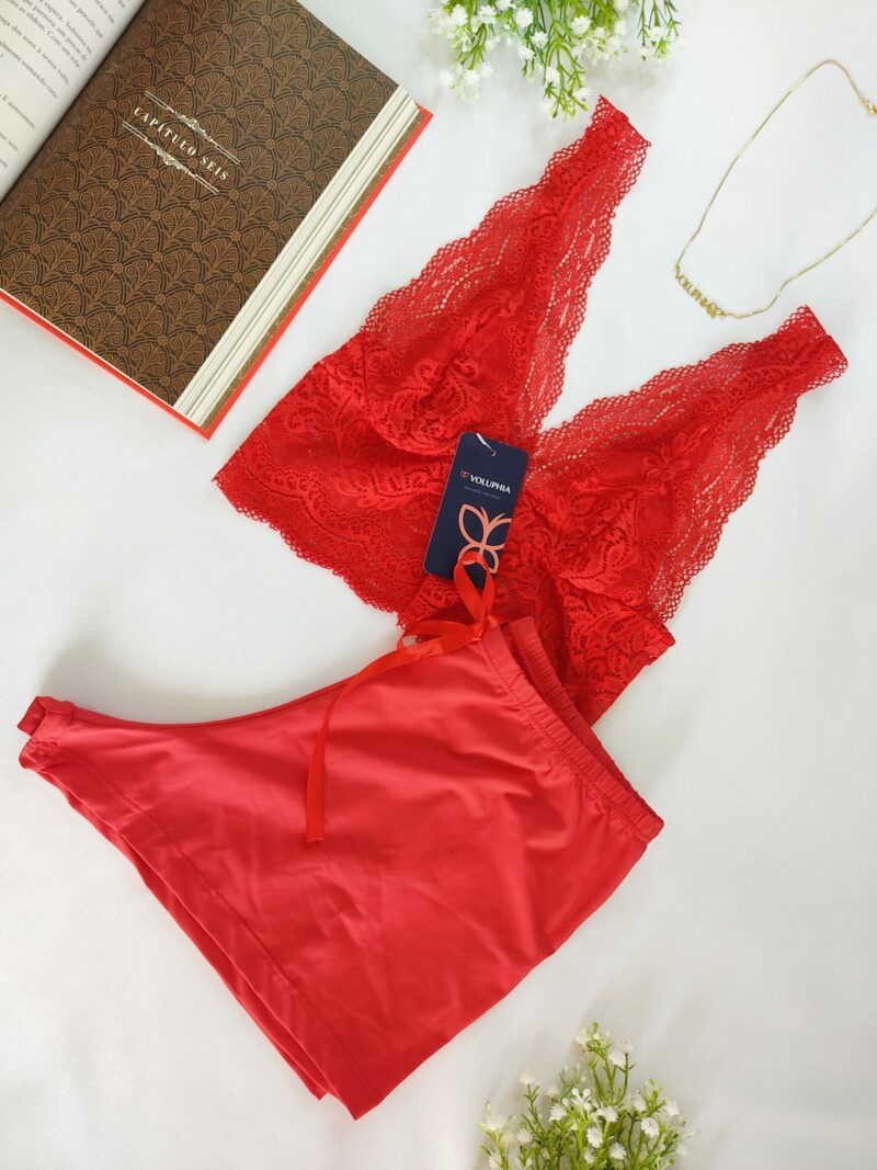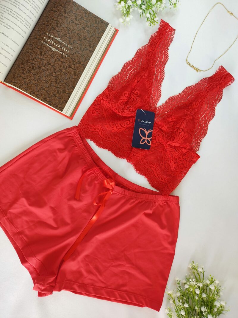BabyDoll, Blusa toda em renda que pode ser usado como crepped, ela é forrada no seio com alças reguláveis, short em malha fria.