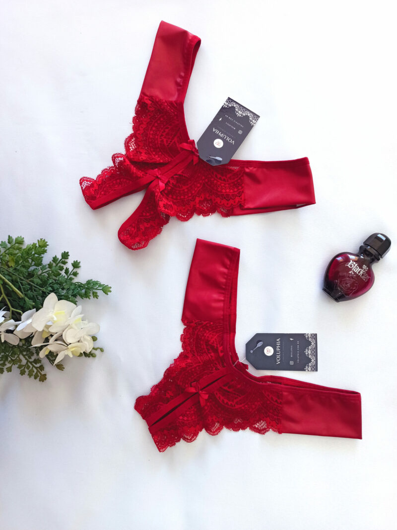 Calcinha Melissa, em Cirrê nas laterais, renda na frente e atrás conforme foto, aberta embaixo (não acompanha sutiã).