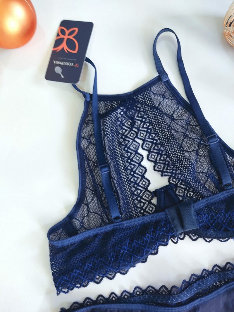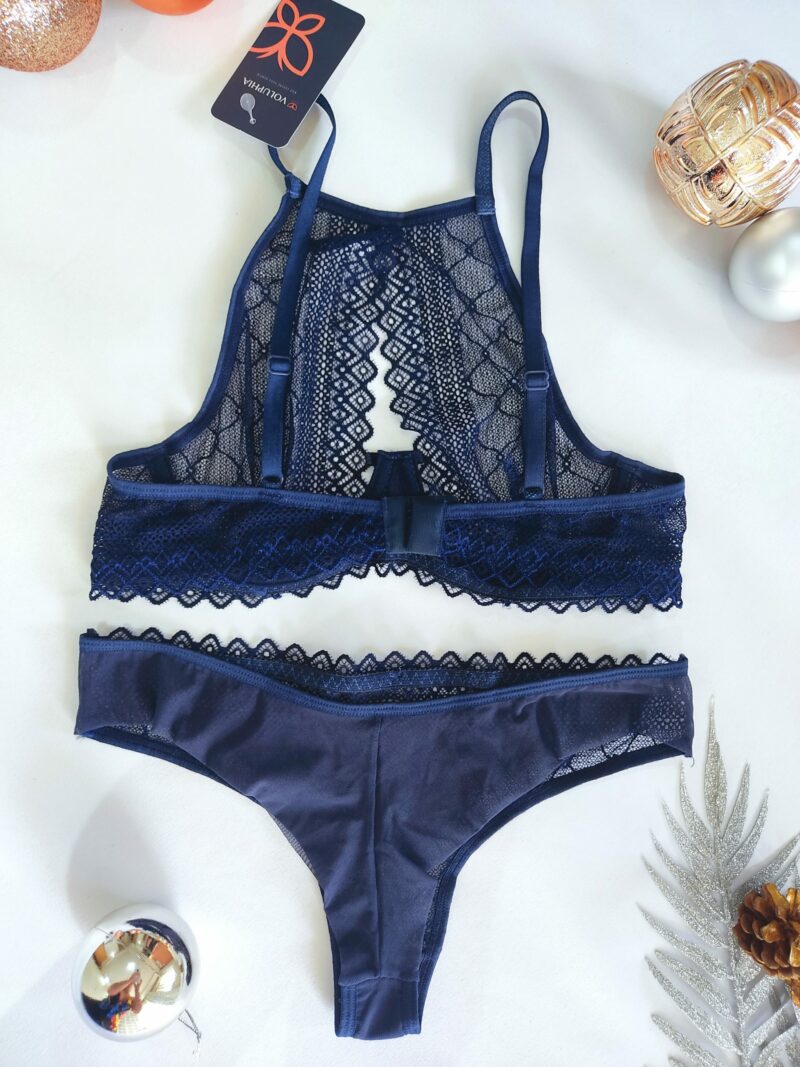 Conjunto com sutiã decotado, sem bojo, com aro, calcinha em renda e fio duplo de tule. Fica lindo, garanto que vai amar!
