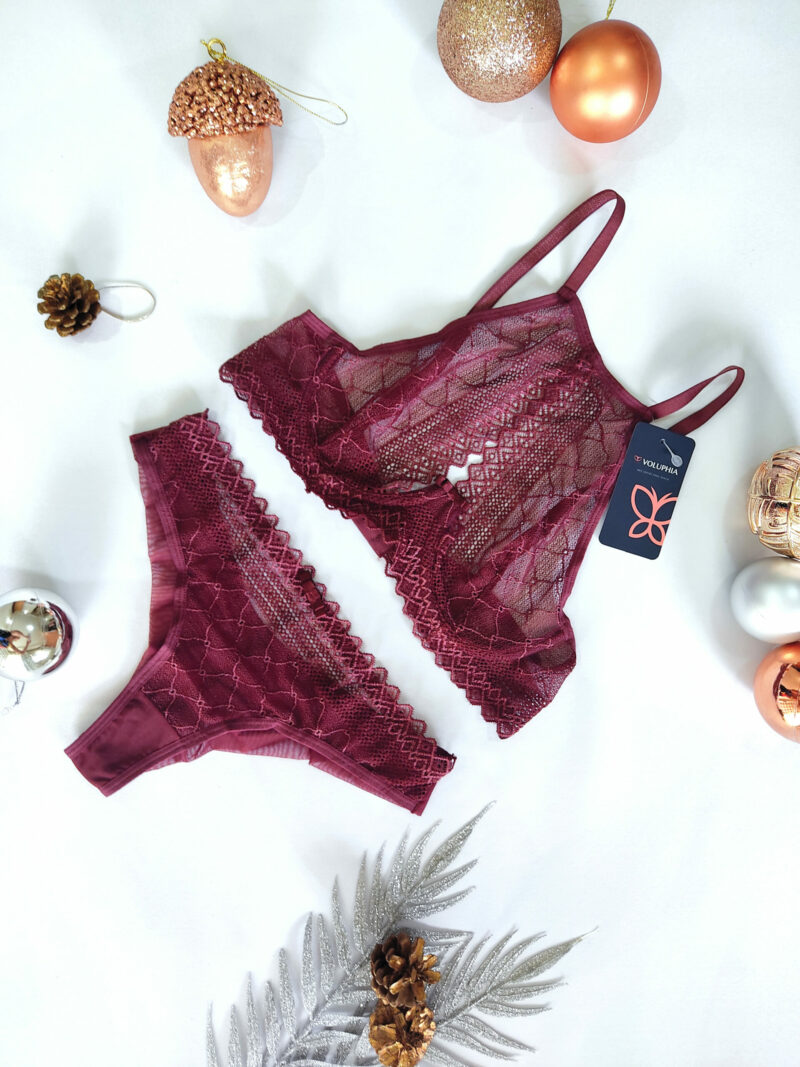 Conjunto com sutiã decotado, sem bojo, com aro, calcinha em renda e fio duplo de tule. Fica lindo, garanto que vai amar!