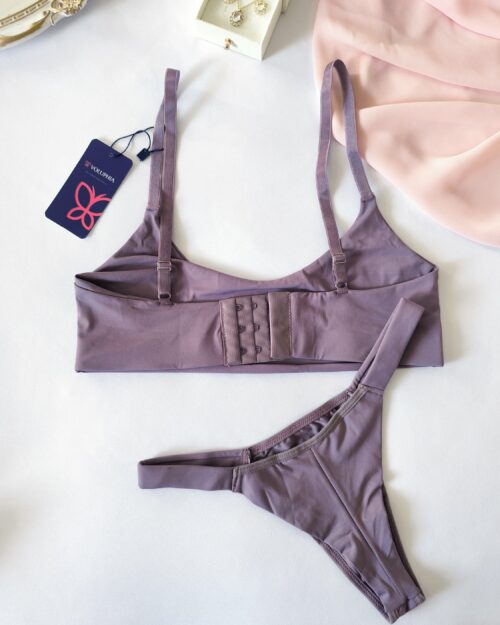 O sutiã não possui bojo e nem aro, a calcinha é fio duplo e não marca!