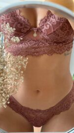 Conjunto de lingerie em renda delicada, composto por sutiã com aro que garante sustentação e conforto, e calcinha semi fio que valoriza o corpo com elegância. Uma lingerie feminina que une delicadeza, conforto e sensualidade, perfeita para quem busca sofisticação no dia a dia ou em momentos especiais.