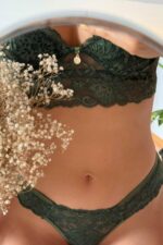 Conjunto de lingerie em renda delicada, composto por sutiã com aro que garante sustentação e conforto, e calcinha semi fio que valoriza o corpo com elegância. Uma lingerie feminina que une delicadeza, conforto e sensualidade, perfeita para quem busca sofisticação no dia a dia ou em momentos especiais.