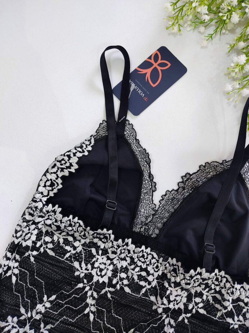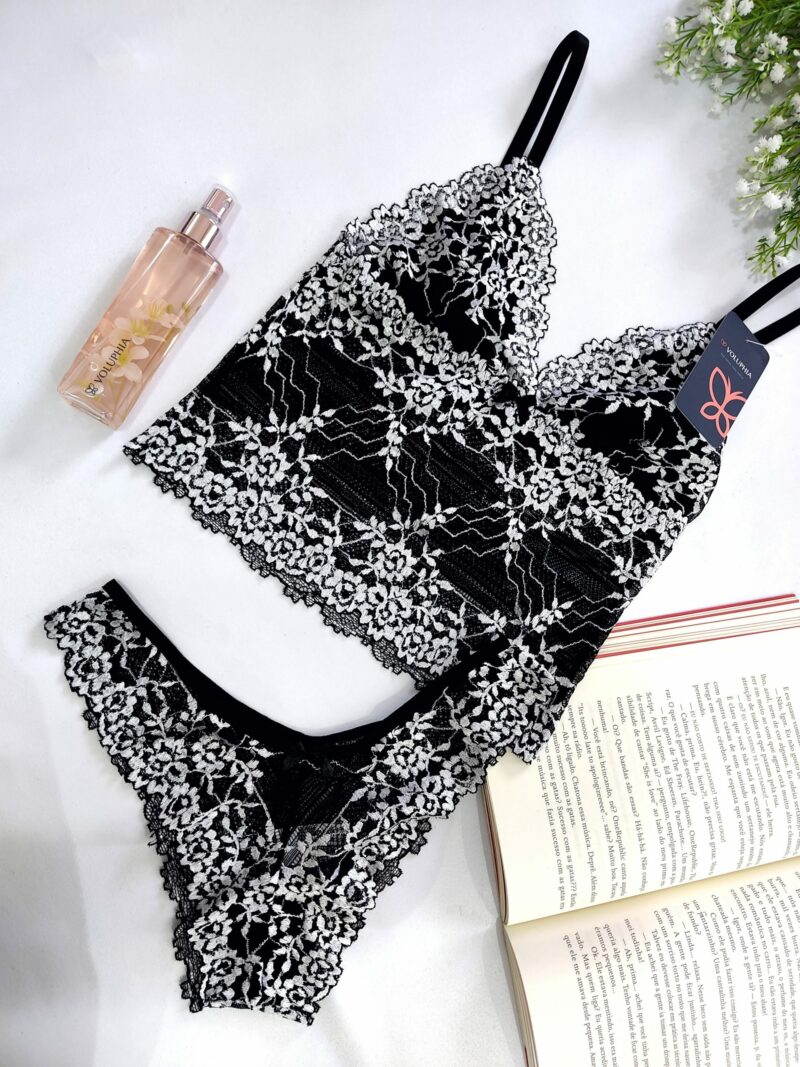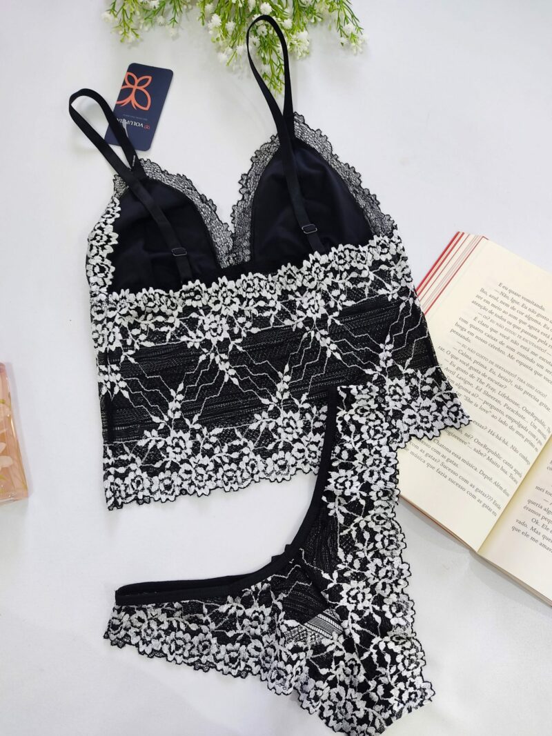 Conjunto em Renda, Camiseta e Calcinha, alças reguláveis, seio forrado, sem bojo, sem aro e sem fecho