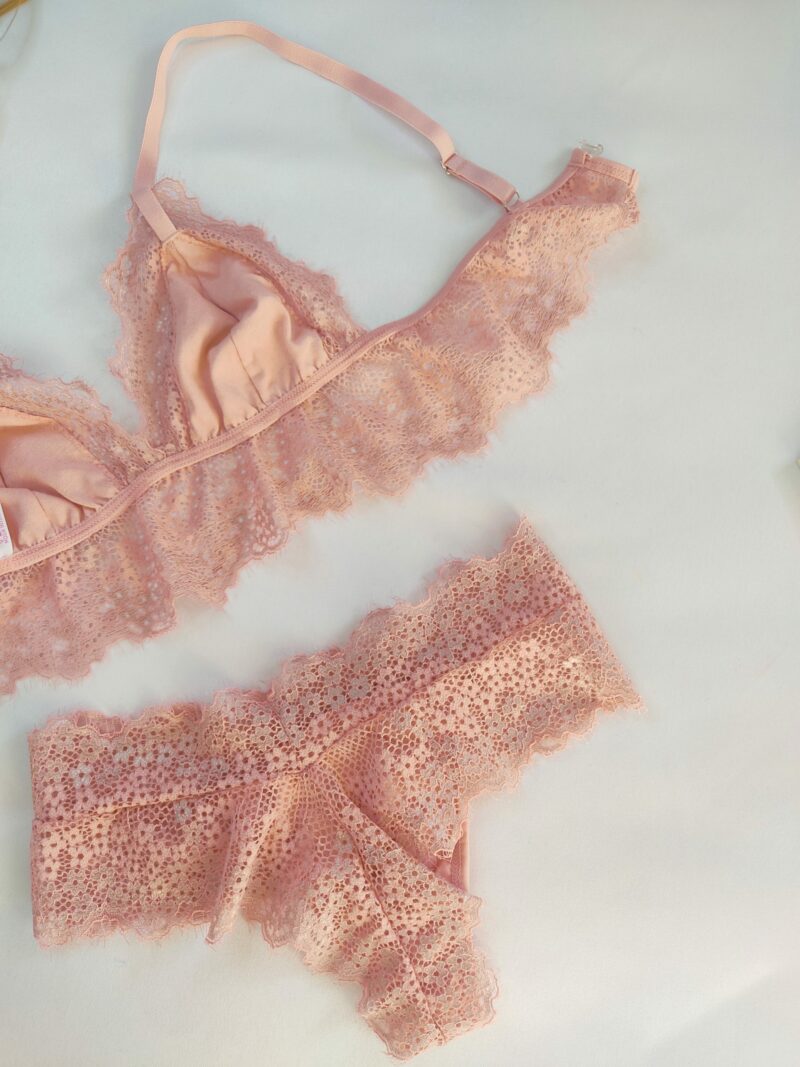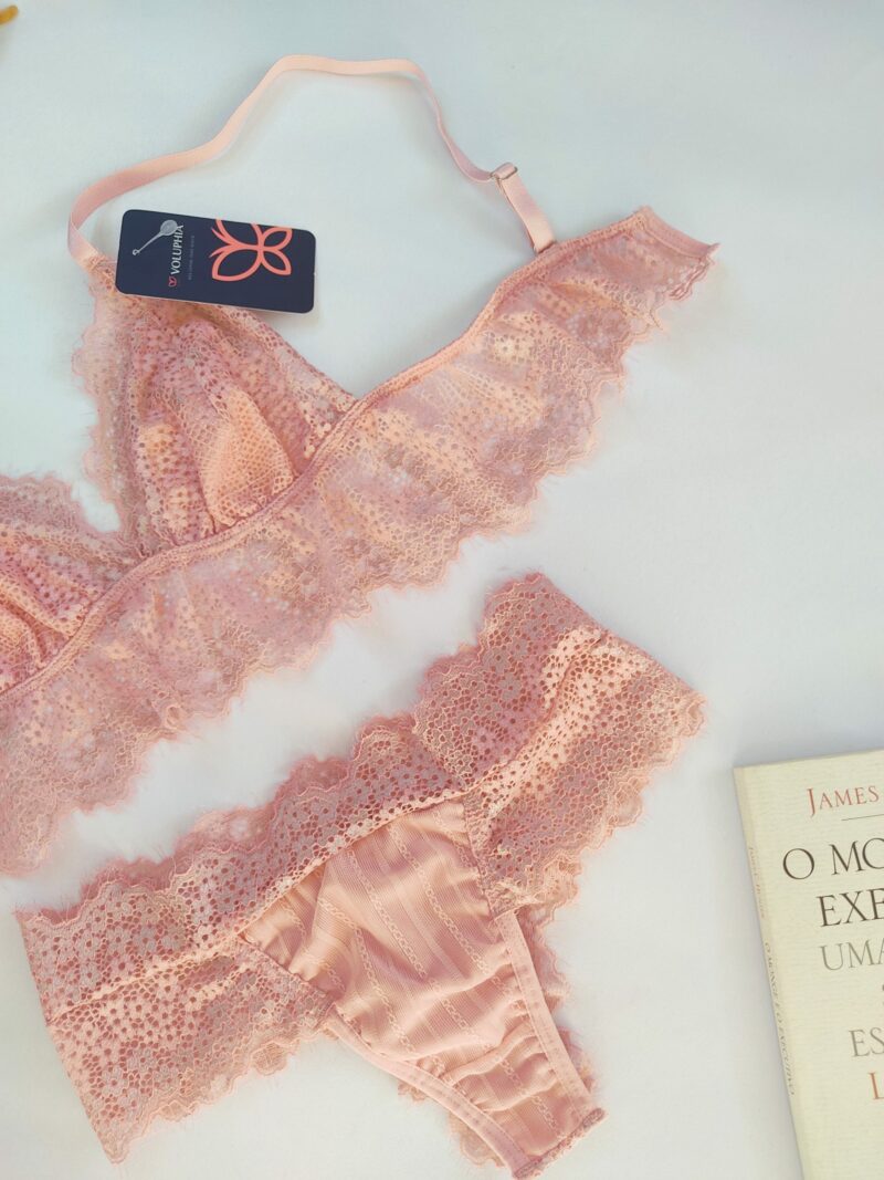 Conjunto sensual, sem Bojo, sem Aro, com forro, todo em renda chantily, calcinha forrada na frente conforme foto e atras toda em renda.