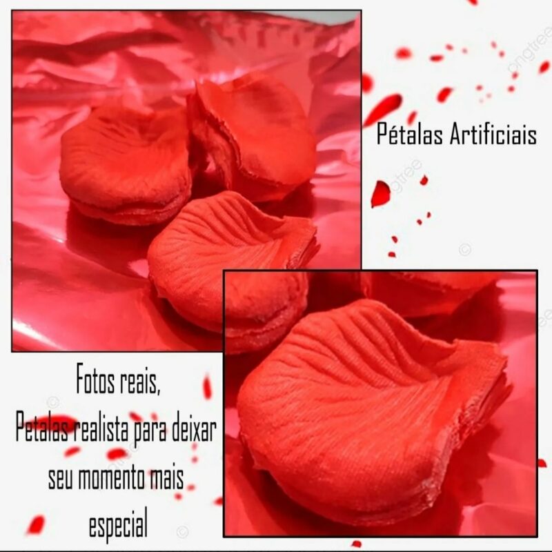 – 200 pétalas artificiais na cor vermelha (tecido sintético, que podem ser guardadas e reutilizada)