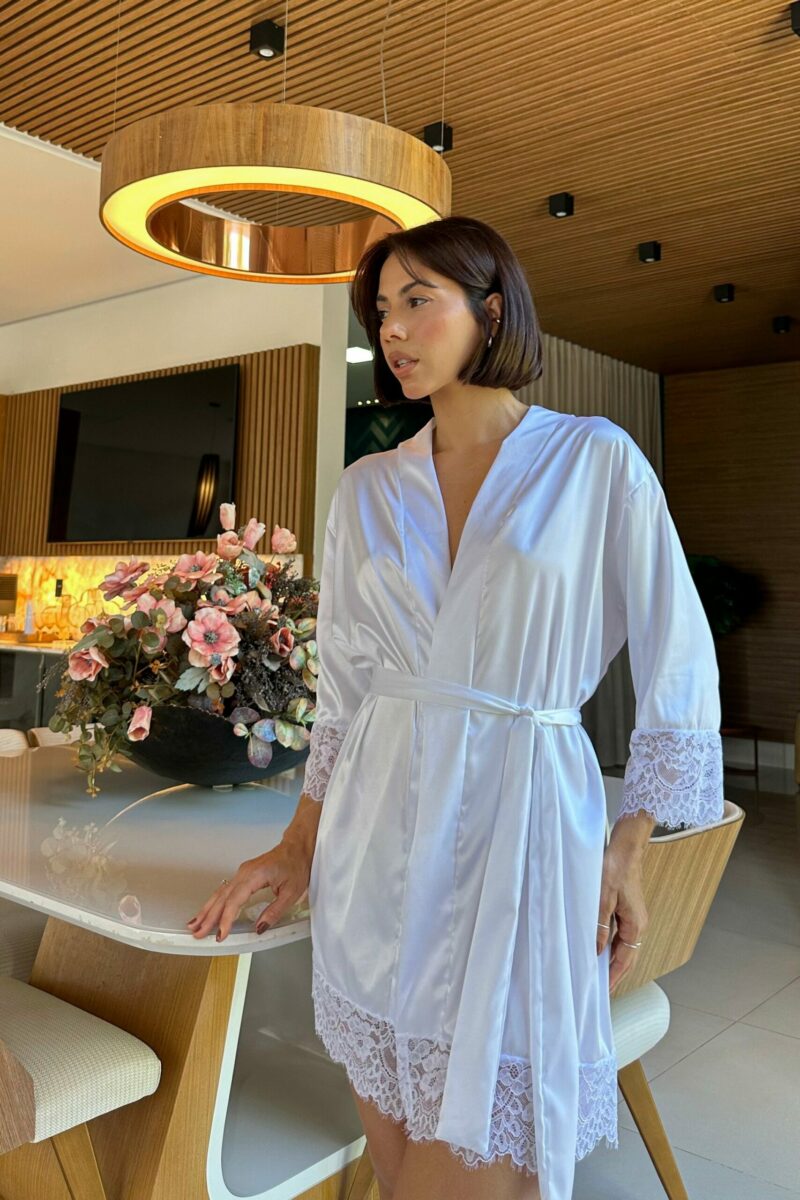 O robe feminino em cetim com renda é a escolha perfeita para quem busca sofisticação, conforto e sensualidade em uma única peça. Confeccionado em cetim acetinado de toque macio, oferece caimento leve e elegante, ideal para momentos de relaxamento ou para compor produções íntimas cheias de charme.