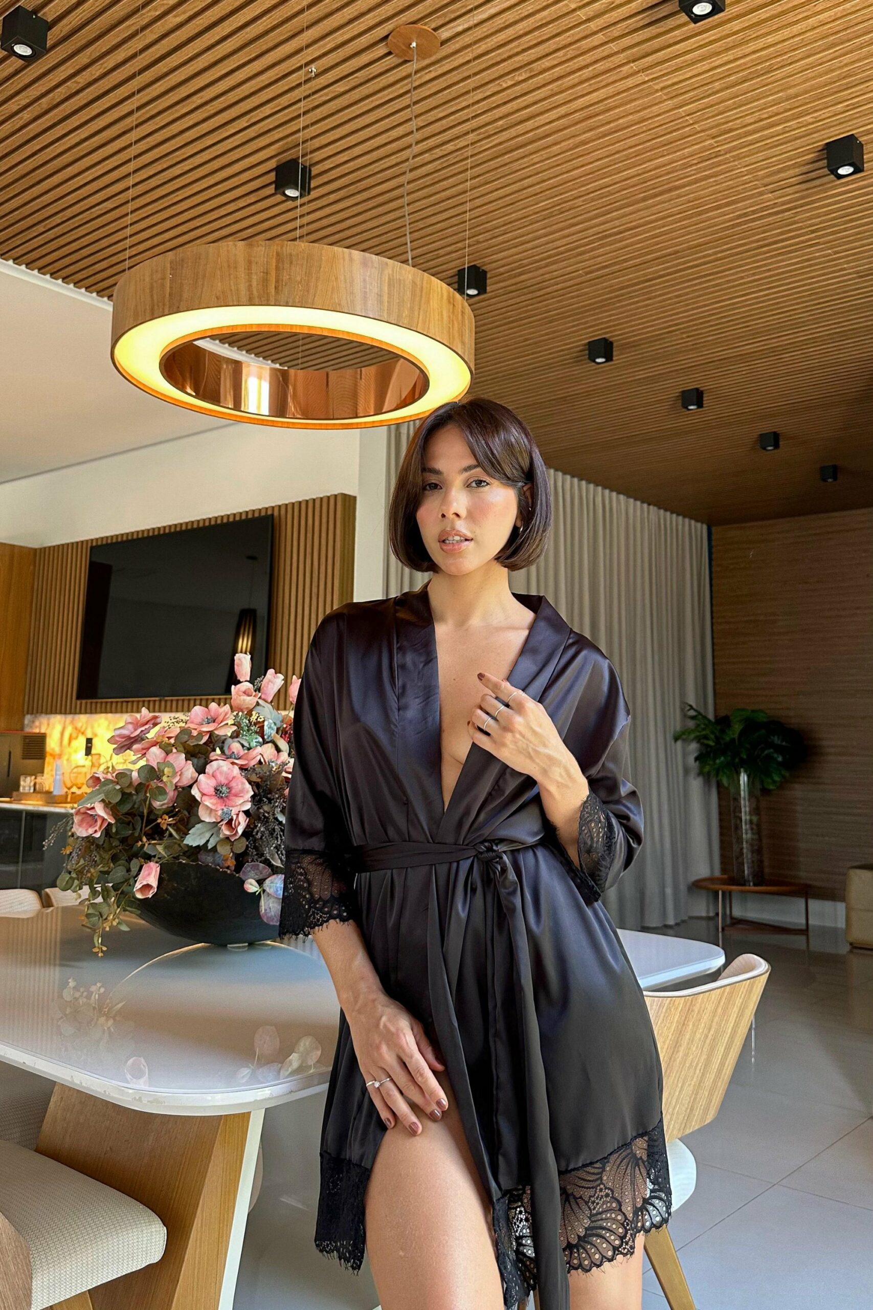 O robe feminino em cetim com renda é a escolha perfeita para quem busca sofisticação, conforto e sensualidade em uma única peça. Confeccionado em cetim acetinado de toque macio, oferece caimento leve e elegante, ideal para momentos de relaxamento ou para compor produções íntimas cheias de charme.